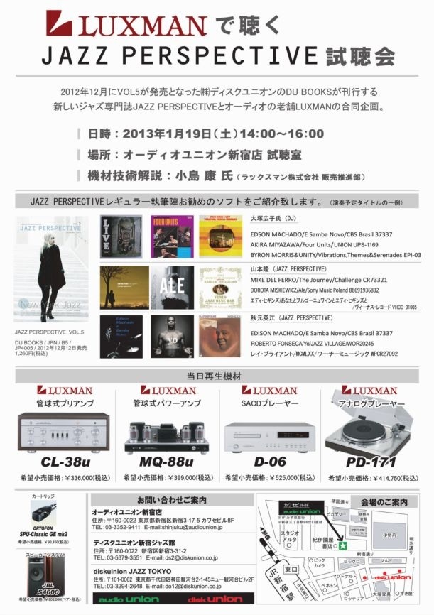 ディスクユニオンさんの新しいジャズ雑誌、JAZZ PERSPECTIVE でのレビューで紹介したいろんなタイプの音楽を、高音質環境で、楽しく体感できます!