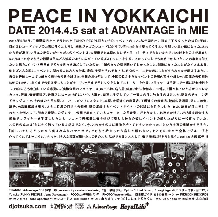 5年前のpeace in MORIOKA の限定CDがきっかけになったといって地方でがんばっている仲間もいます。