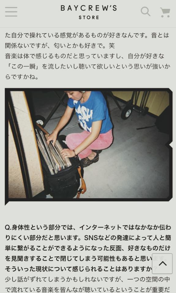 BAYCREW’S STORE EC限定のセレクトショップ BOICE 。限定ストアオープン時にDJ参加させてもらい、レコード文化もアパレルも、もっともっと生活に溶け込んだらイイね、なんていうお話しを色々しています。